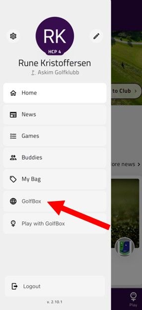 Trykk på de 3 piltastene - deretter velger du golfbox